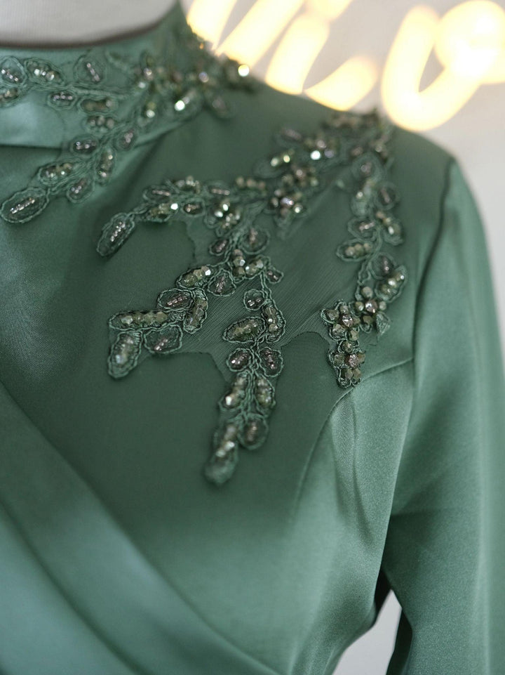 Unsere handgefertigten Produkte sind mit sorgfältig ausgewählten Edelsteinen, Pailletten und Perlen verziert, um elegante und komplizierte Designs zu schaffen. Die Herstellung jedes Stücks ist ein zeitaufwändiger Prozess, da erfahrene Kunsthandwerker unzählige Stunden damit verbringen, die Stücke von Hand zu verzieren und dabei traditionelle, über Generationen weitergegebene Techniken anwenden.